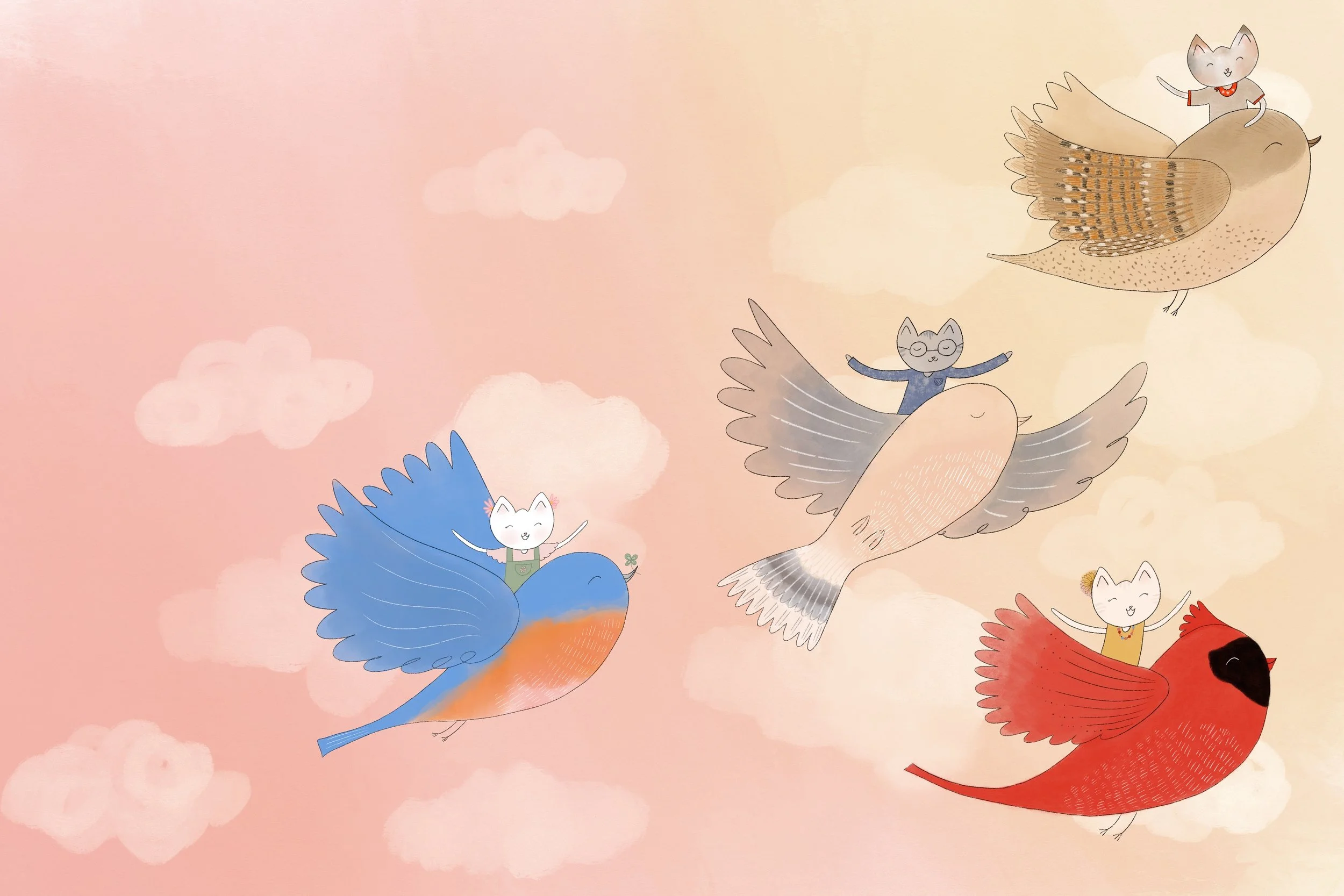 Singing in all Seasons. I created this piece for the last pages in my children’s poetry book, Discovering the Garden. I chose each bird to represent a different season— a cardinal for winter, and a bluebird for summer. Life is full of seasons. I’ve personally struggled through seasons of fear or loneliness, and wanted to remind people that there is beauty to be found in every season of life, and that every dawn brings fresh hope.