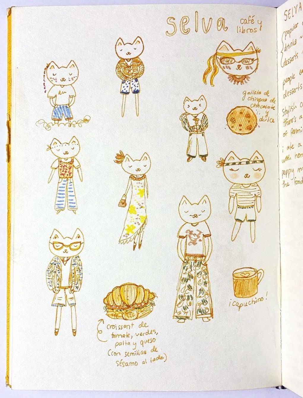 Selva. Can you tell I love coffee shops? I created this piece while sitting at Selva, a local café. I drew the characters based on my observations of people and their outfits. I love drawing fashion— I’ve always enjoyed dressing my characters in all sorts of outfits. I also drew the food I ordered :)